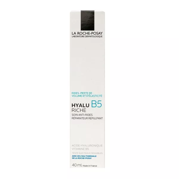 Le soin anti-rides réparateur repulpant Hyalu B5 La Roche-Posay est un soin anti-âge spécialement conçu pour les peaux sèches. Formulé à base de deux acides hyaluroniques et de vitamine B5 il a une action hydratante, nourrissante, repulpante et réparatrice. Il estompe les rides et ridules, redonne de l’élasticité à la peau, renforce la barrière cutanée et laisse la peau lisse, souple et fraîche.